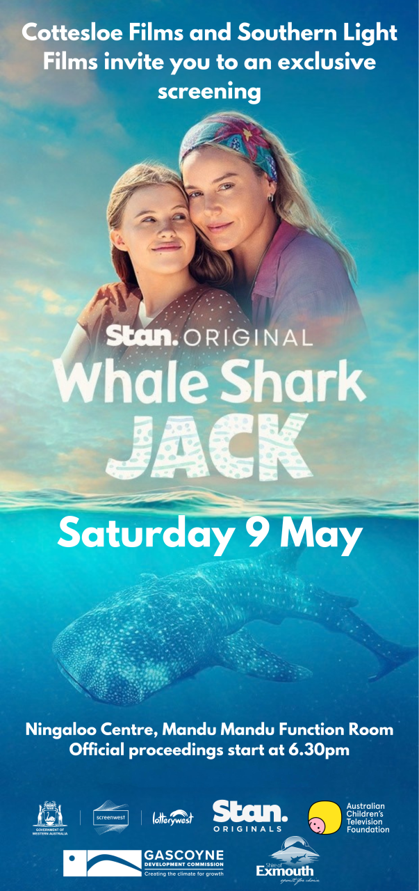 As a precursor to the main event, the community can already begin the celebration this week. The "Whaleshark Jack Exclusive Film Exhibition" officially opens its doors this Thursday, 23 April 2026 in the Tantabiddi Travelling Gallery at the Ningaloo Centre. The exhibition offers visitors and locals alike a rare glimpse behind the scenes, featuring props and exclusive footage from the Stan original film. Crucially, the exhibition celebrates the incredible local contribution to the film; with so many of our own community members having been involved in the cast and crew, the gallery serves as a tribute to their hard work and talent. The exhibition will run until Sunday, 2 August 2026.